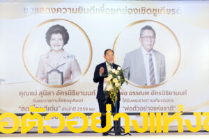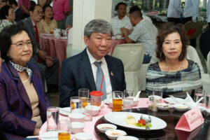 2025年12月26日上午,潮州會館徐惠深主席暨諸首長,前往那空那育府萬那縣,出席本會館名譽主席張楚宏先生與夫人素妮沙女士,榮獲本年度模範父親與模範母親兩個榮譽稱號,可謂是雙喜臨門,可喜可賀,徐惠深主席登臺致祝賀詞並獻上潮州會館的祝賀!張楚宏先生居喜不忘公益事業,為各大善堂捐贈善款,同時也捐贈給潮州會館20萬銖作為潮館經費,午餐後,徐惠深主席暨諸首長平安返回曼谷!