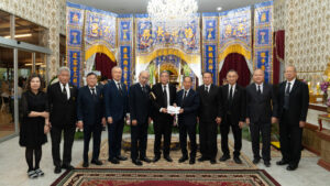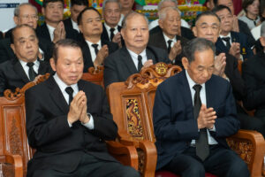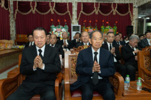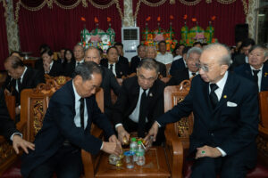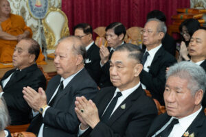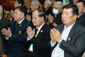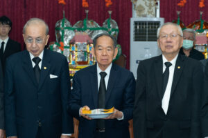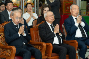 2025年12月26日晚,潮州會館徐惠深主席暨諸首長,前往本京越叻巫拉那佛寺第一廳,參加本會常務秘書羅煒達令慈鄭楚萍太孺人治喪儀式,當晚是泰國潮州會館暨各縣同鄉會的贈經暨公祭儀式!徐惠深主持佛前明燭,並帶領各僑團首長舉行公祭儀式並行崇高三鞠躬禮!