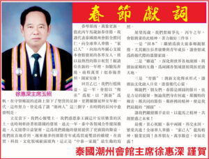 泰國潮州會館主席徐惠深2026年春節獻詞