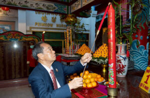 潮館首長除夕在大本頭公廟及龍尾古廟拜神祈福 徐惠深主席膜拜及向福神呈獻金花祈願會務昌隆